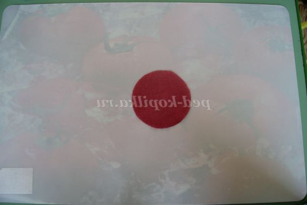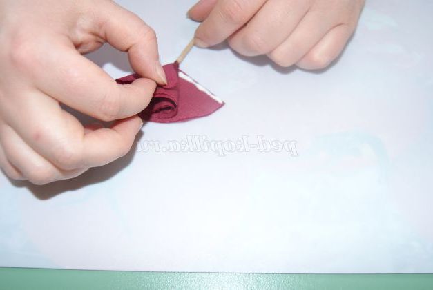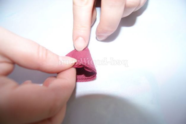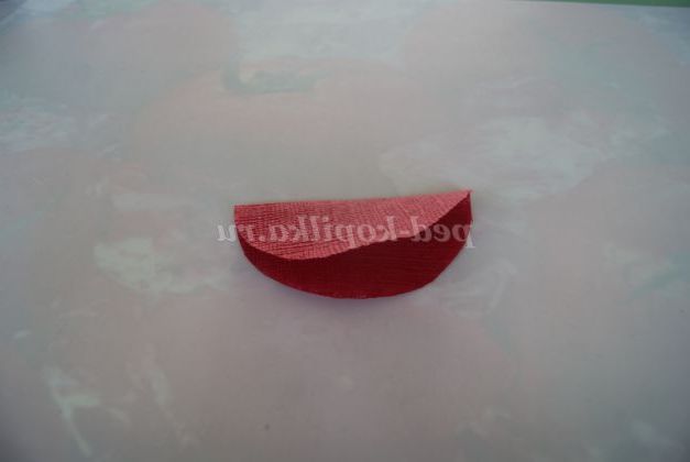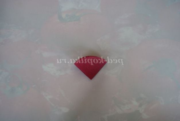 4. Візьміть 7-8 кіл складіть їх навпіл і приклейте так само, як в пункті 3, загинаючи виступаючі куточки на зворотний бік. Кожним наступним пелюсткою закриваємо шов на попередньому пелюстці.