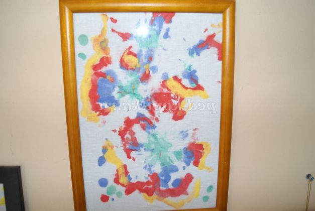 5. Після закінчення роботи даємо тканини 5 хвилин підсохнути і розмотує нитки. Дивимося і милуємося цією красою. Сушимо тканина з малюнком.