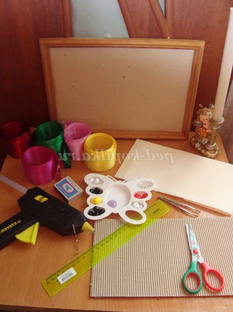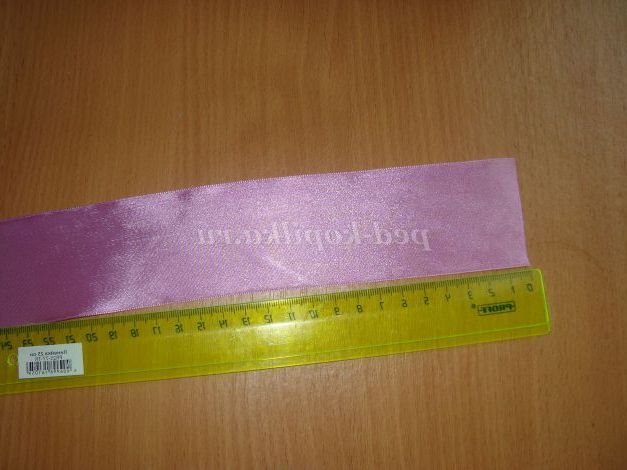 -атласні стрічки: рожевого, малинового, бордового, жовтого і зеленого кольорів шириною 5 сантиметрів