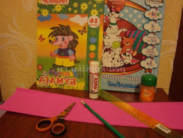 - крепований папір рожевого кольору (можна будь-який інший колір для квітів),