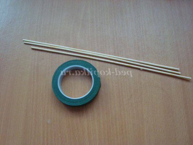17)Скручуємо чашолисток і пуп'янок вместе.Таких бутонів робимо 2 штуки.