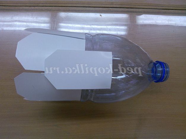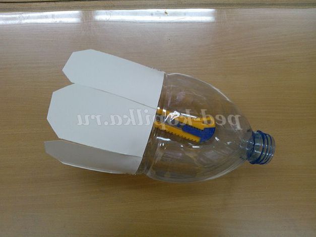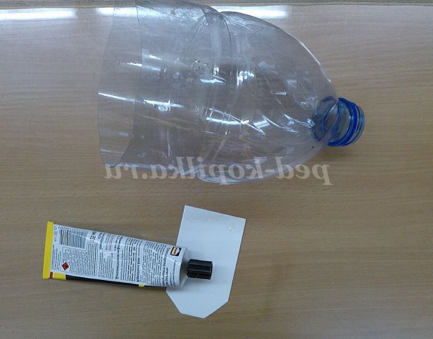 Для роботи знадобляться: Пластикова пляшка 5 л (краще безцветную), крейдований картон, клей " момент " або гарячий клей, різак і ножиці.