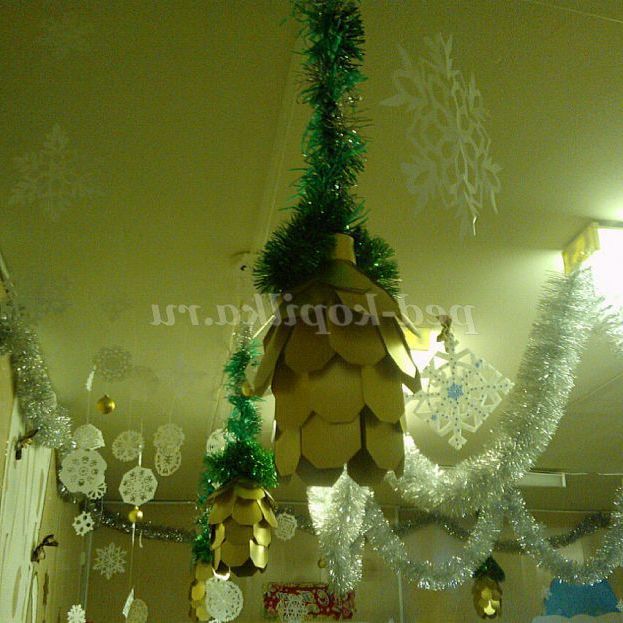 Майстер-клас з виготовлення декоративної прикраси інтер'єру - плафон-шишка, підійде для підготовки аудиторій до Нового року.