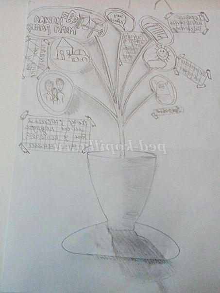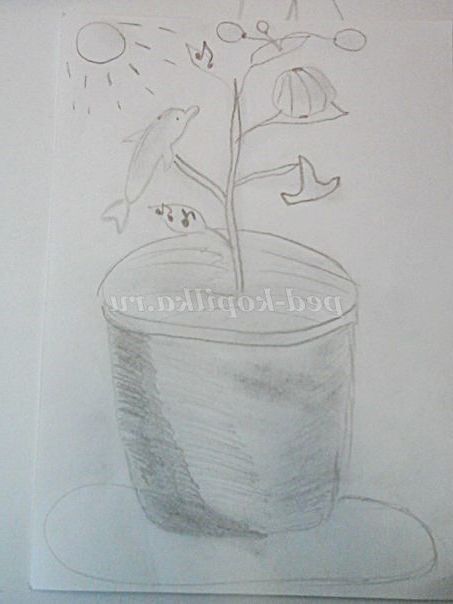 І так,дітям для зразка,для кращого сприйняття ставиться на огляд горщик з фікусом(або будь-який інший квітка з центральним стеблом)