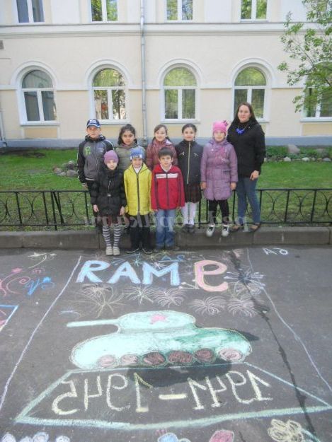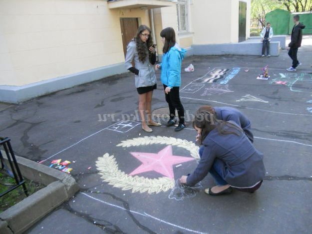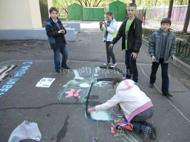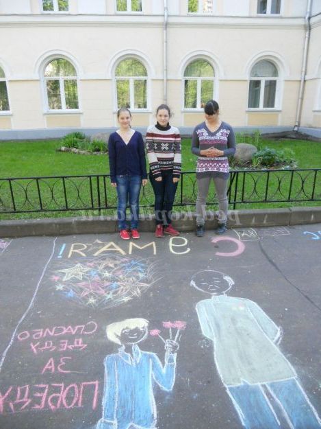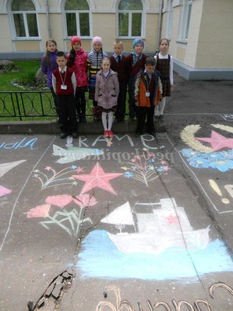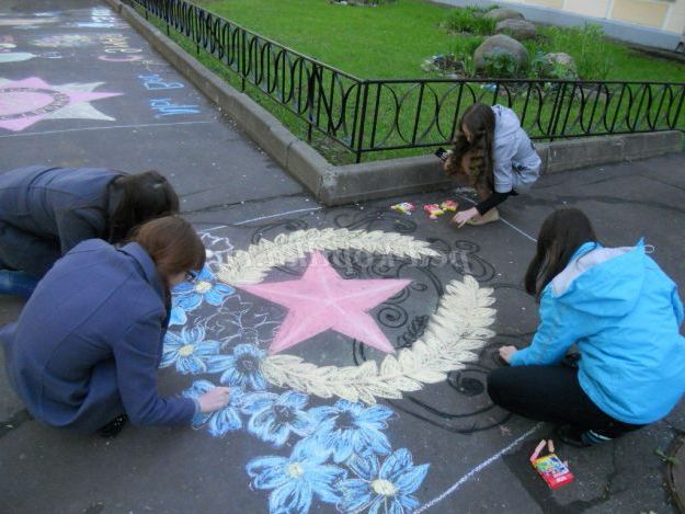 В нашій школі традиційно, щороку проходить фестиваль малюнку на асфальті. Діти малюють крейдою листівки присвячені цього великого свята з побажаннями і написами пам'яті. Будь-який перехожий може зайти на територію школи і подивитися дитячі малюнки.