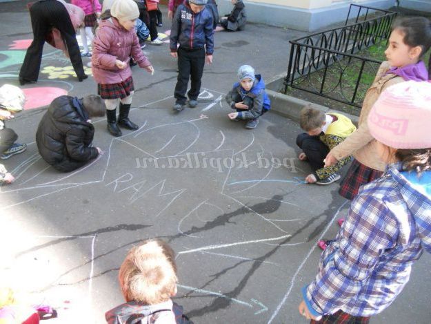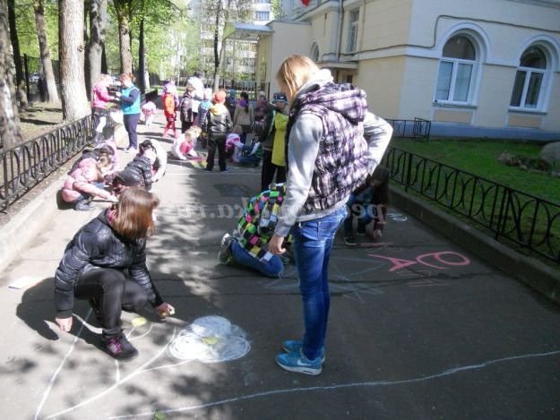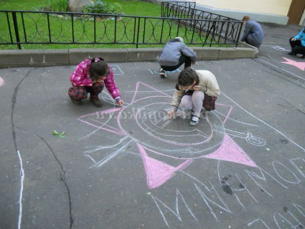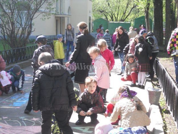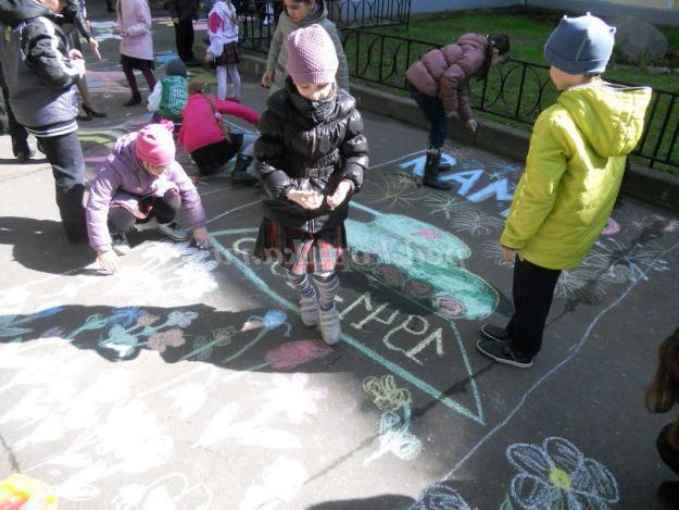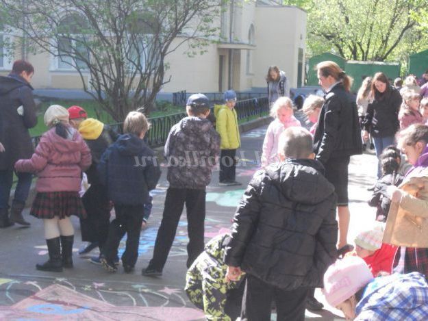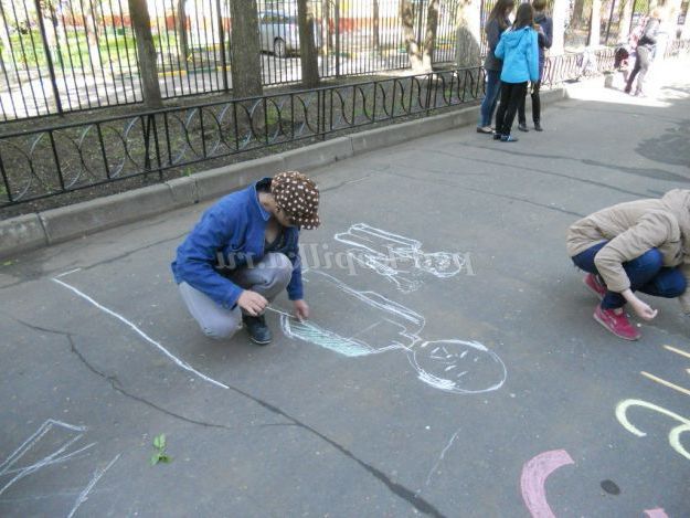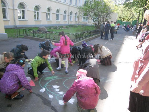 Після класний годин (молодша школа)та перед класними годинами(середня ланка)діти виходять на шкільне подвір'я озброївшись крейдою та ескізами.