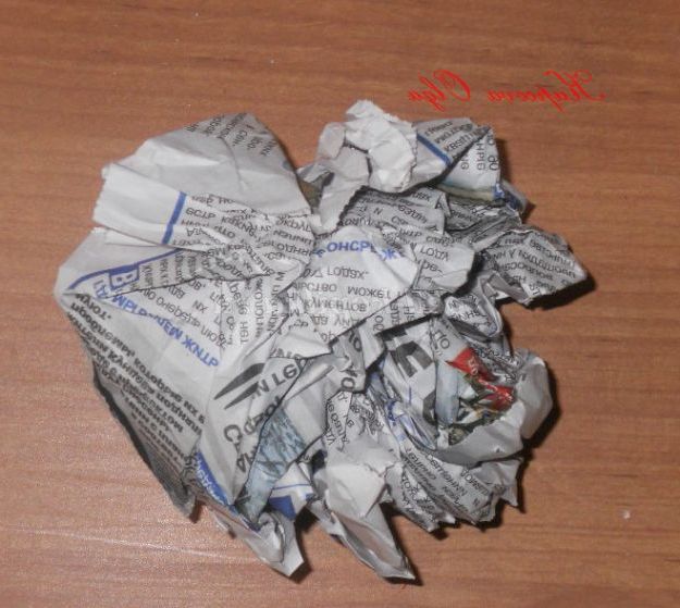 Для цього беремо газету в два розвороту і комкаем в кульку.