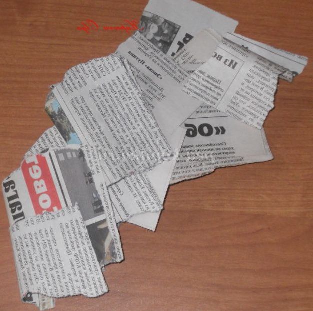 Розриваємо газету на шматочки,не дуже дрібні і не дуже великі.