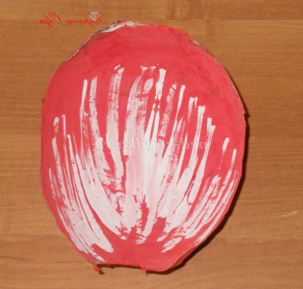 Зафарбовуємо зеленим кольором і за краешкам проходимо рідкої коричневою фарбою,додаємо прожилку.