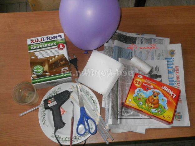 Приготувати матеріали для роботи, розвести клей,надути кульку.