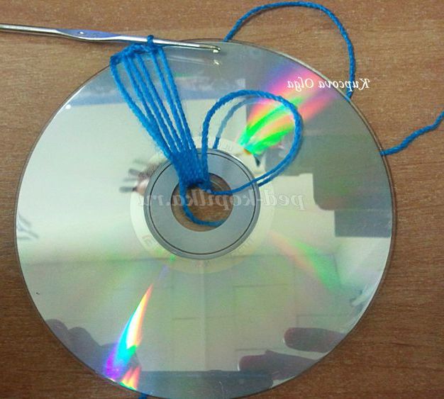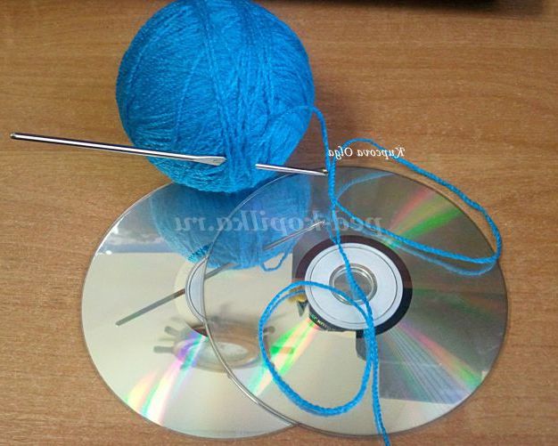 Навчити в'язати гачком із застосуванням непридатного матеріалу( CD диски)