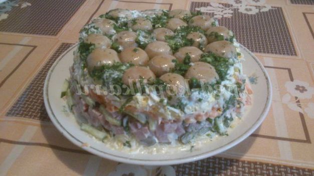![]() Мені дуже подобається експериментувати в процесі готування, придумувати що-небудь новеньке. Знайшовши в Мережі різні варіації цього салату і читаючи список інгредієнтів, думала: «Чогось не вистачає». Хочу представити своє трактування рецепта.
