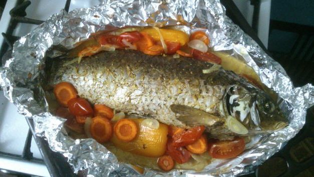 Сазана почистити від луски і випатрати, натерти перцем і сіллю. Оскільки риба ...