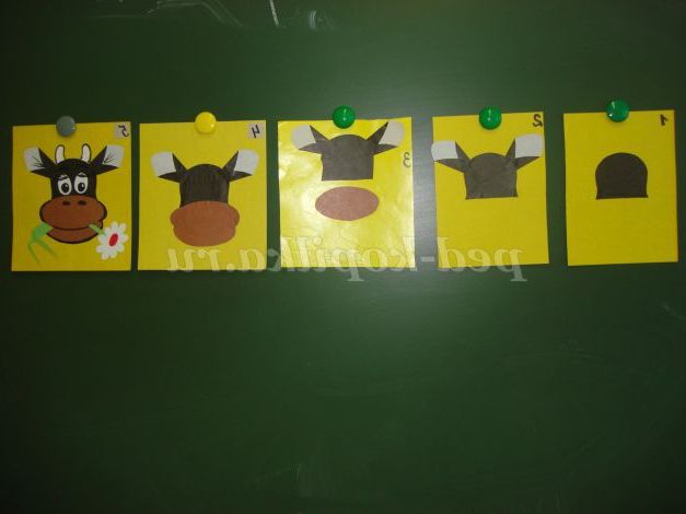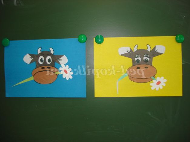 Змінюючи розташування деталей, ти можеш зобразити різний настрій корови. Ви склеїти те зображення, яке тобі більше сподобалося.