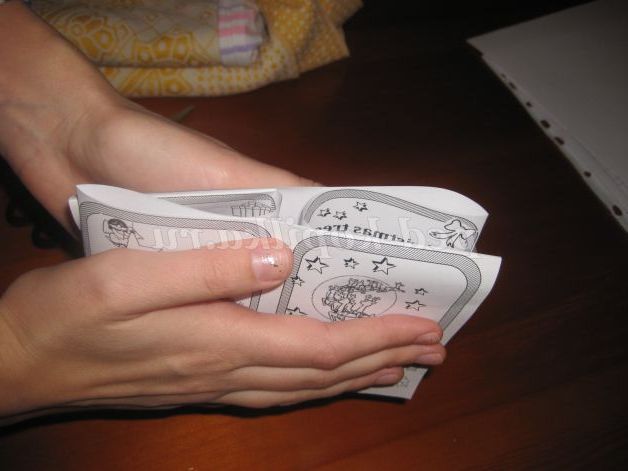 Тепер відкрийте його. Складіть аркуш навпіл (поперек). Лінії згину повинні ділити листок на чотири рівні частини.