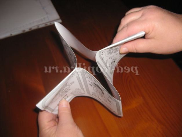 Відкрийте аркуш паперу і складіть його знову навпіл в іншу сторону. Потягніть за обидва кінці до центру.