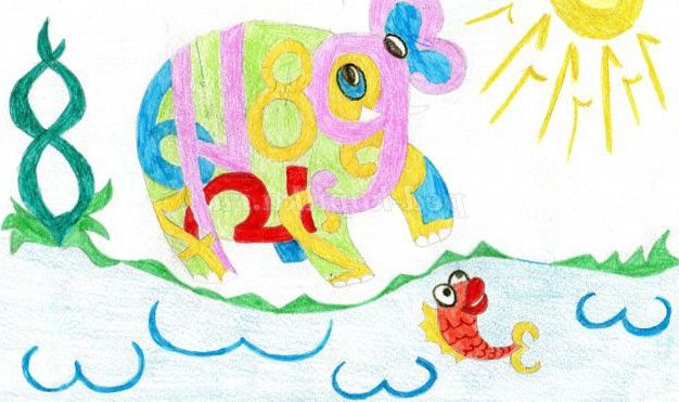 (Учні приготували свої домашні завдання : малюнки з цифр і надають їх журі для оцінювання.)