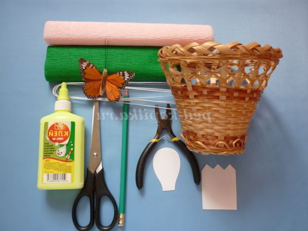 Ставимо зібраний квітка в кошик і прикрашаємо декоративної метеликом. Милуємося результатом своєї праці.