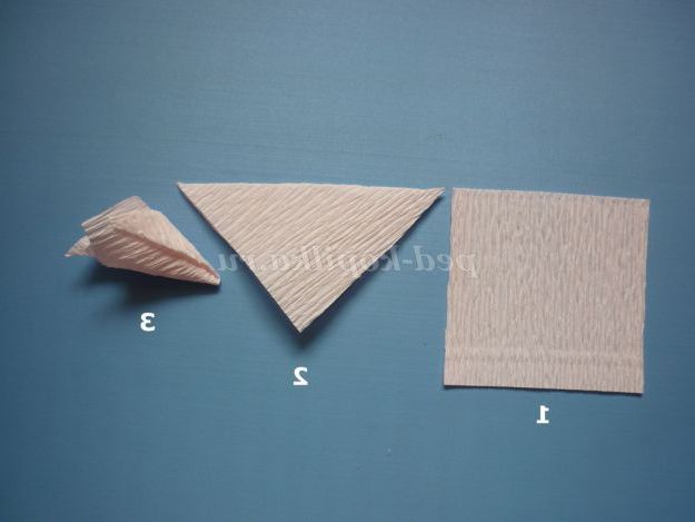 Робимо великі бутони. Їх нам знадобиться 3 штуки. Кожен бутон складається з 2 листочків, значить, нам потрібно 6 листочків.