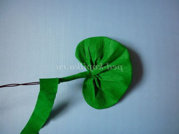 Обмотуємо ніжку листка зеленою смужкою паперу шириною 2см