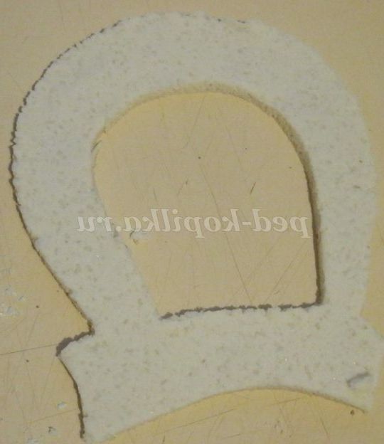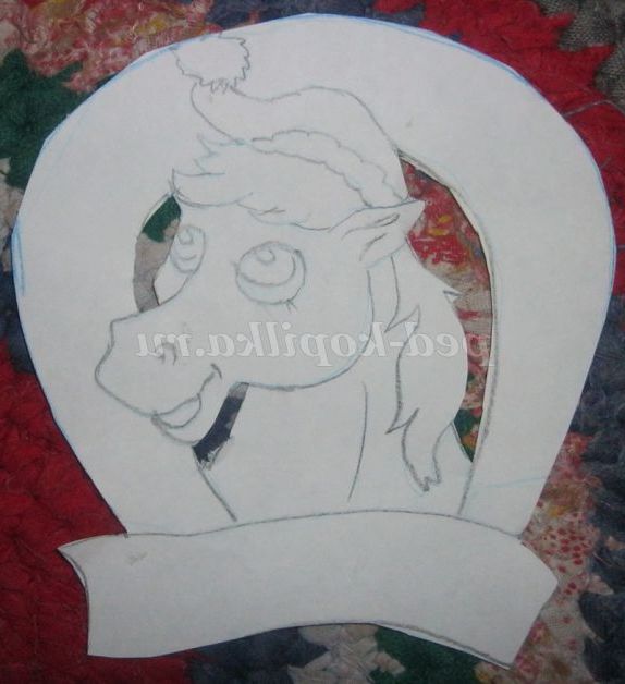 4. За шаблоном тепер виріжемо голову коня, виліпив очі, гриву, новорічну шапочку
