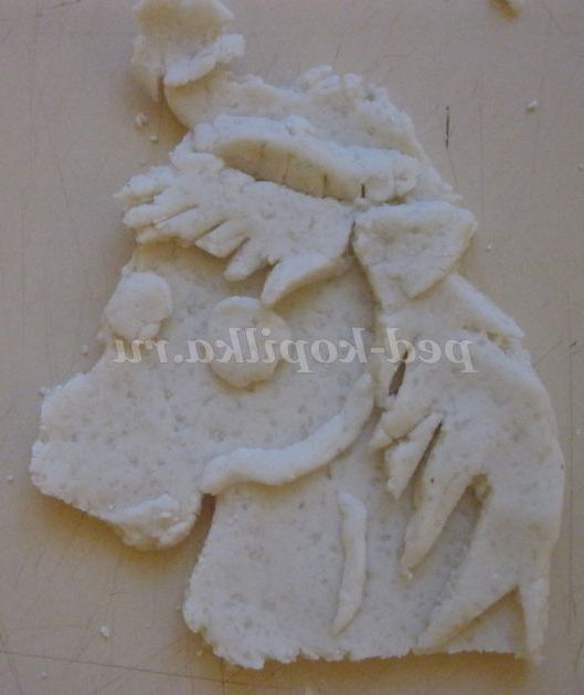1. Розкачуємо невеликий шматок тіста, вирізаємо голову Діду Морозу