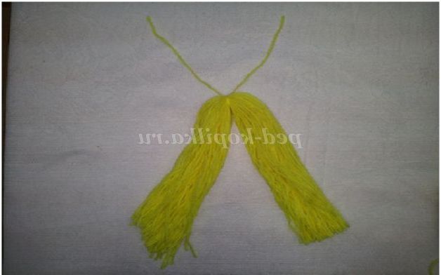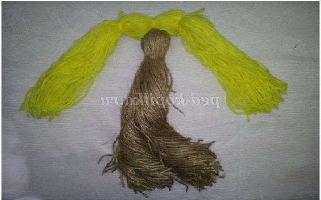 3. Моточек розрізаємо і перехватываем в центрі ниточкою, що це буде середина голови.