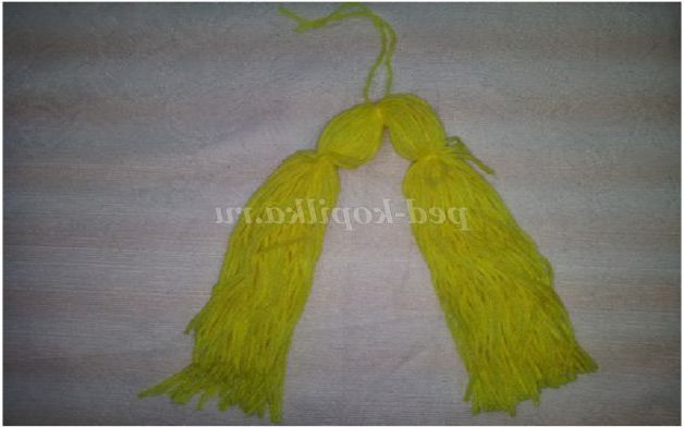 2. Так само робимо наступну заготовку з ниток для в'язання, це будуть кіски для лялечки (довжина кос довільна).