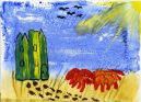 На заняттях з малювання ми з хлопцями (6-7 років) дуже любимо експериментувати з різними матеріалами. Уявляю вашій увазі наші улюблені техніки: монотипию і малювання смужками картону. Дану роботу ділимо на два заняття.