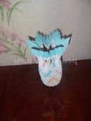 Складання починаємо з денця. У кожному ряду з 3 розташоване за 24 модуля. Замкнувши коло і отримавши ось таке "сонечко", вивертаємо його, перетворюючи в циліндр. І продовжуємо нарощувати черговий, третій, ряд маю модулі обраного цвета.В четвертому п'ятому і шостому рядах кількість модулів не змінюємо.