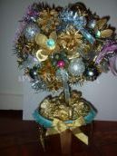 Ось таке цікаве дерево топіари на мій погляд вийшло. Причому воно вийшло спонтанно, донька запропонувала зробити до нового року "золоте дерево", а я не подумавши, погодилася, ну а як ви знаєте якщо дитині пообіцяв, "розбив", але зроби Крона мого дерева зроблена з газети, за принципом "загорни один лист в інший", обмотала звичайним пакетом і скотчем, крону одягла на палицю. У квітковий горщик налила трохи гіпсу і посадила дерево туди, почекала поки гі...