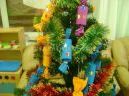 Але в комп'ютерному класі зайнятий кожен квадратний сантиметр, тому маленька новорічна ялинка-топіари буде як не можна до речі. Таке деревце не соромно подарувати, можна навіть поставити його на святковий стіл.