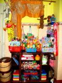 Обладнання. Музичний супровід, хустки (шарфи), овочі (варену картоплю, моркву, цибулю), масло, ложки, ножі, дошки, варення, 2 склянки кип'яченою водою, 2 відра з водою, 2 порожні відра, 2 ганчірки, текст колискових пісні і музичний супровід для них). Подарунки, листівки.