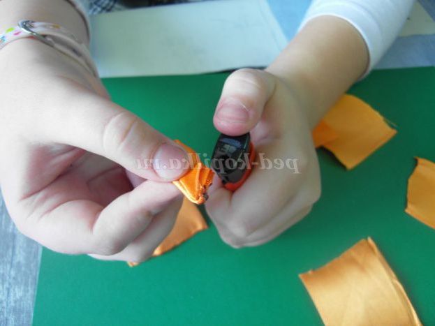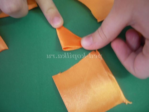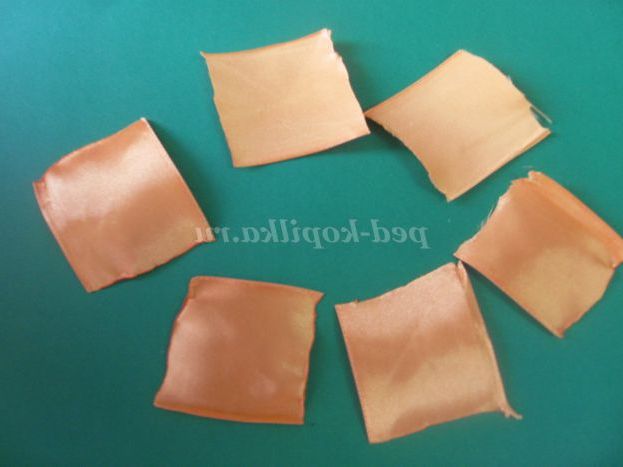 1. Нарізаємо атласну стрічку жовтого кольору на квадрати 5*5 см