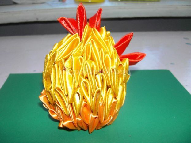 Виготовлений курча може бути чудовим подарунком до Великодня. Його можна подарувати мамі, бабусі, сестрі, подрузі або улюбленій вчительці. А також, курча, виконаний в оригінальній техніці канзаші прикрасить інтер'єр будь-якої кімнати.
