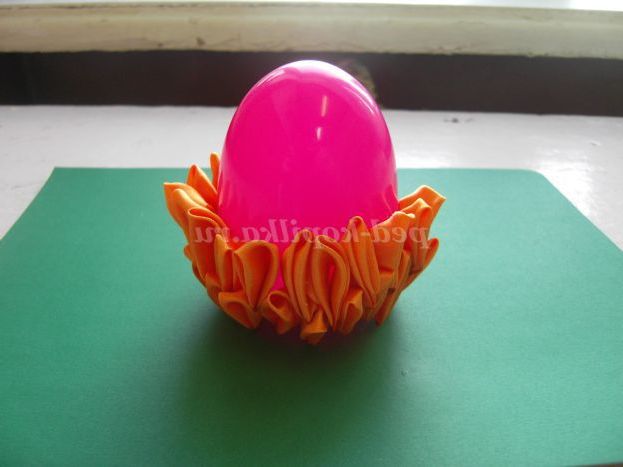 8. Отримані пелюстки приклеюємо на пластмасове яйце шарами (фото 8,