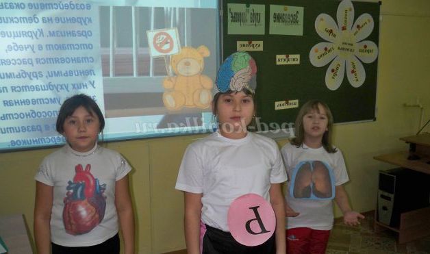 Вчитель: До найпоширенішою шкідливою звичкою відноситься куріння. Кожен рік армію курців поповнюють мільйони людей. І найстрашніше, що 4, 5, 6, 7 - класники вже починають палити. Безневинна на вигляд цигарка, є для багатьох спочатку забавою, а потім задоволенням, перетворюється з часом на ворога, віднімає здоров'я у кожного, хто не зумів вчасно одуматися. Після десяти-п'ятнадцяти років згубна звичка стає в тягар, але до того часу влада цигарки як наркотику настільки сильна, що вона долає і розум. Може бути, в затяжних випадках настає деградація розумових здібностей, коли людина перестає розуміти елементарні істини, зрозумілі всім, але незрозумілі палить.
