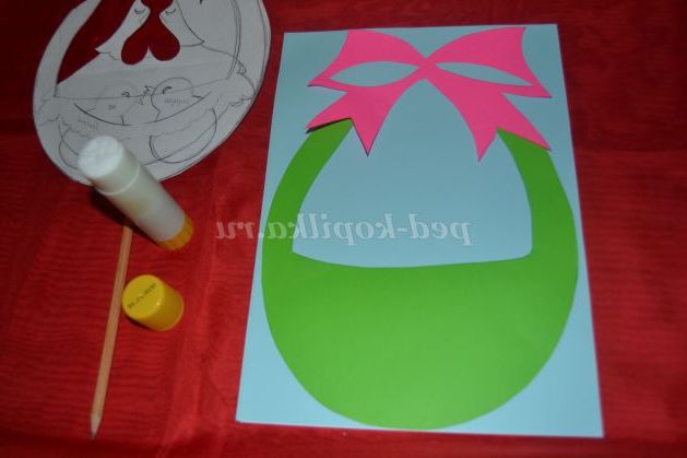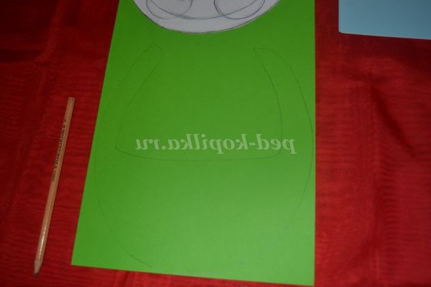Тепер приступимо до наступної операції - обводимо контур у вигляді корзинки на папері зеленого кольору.