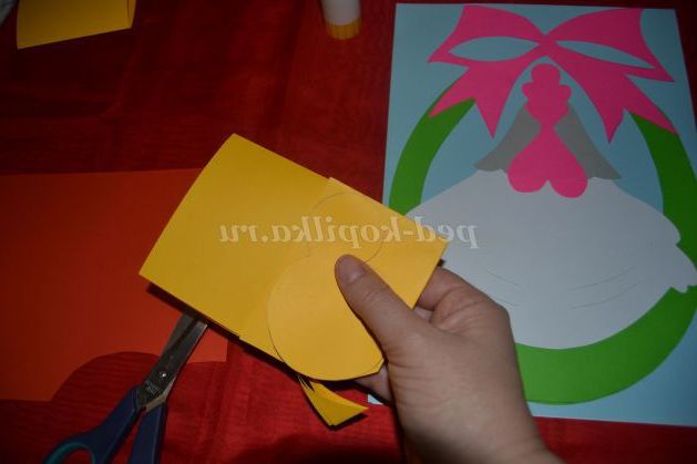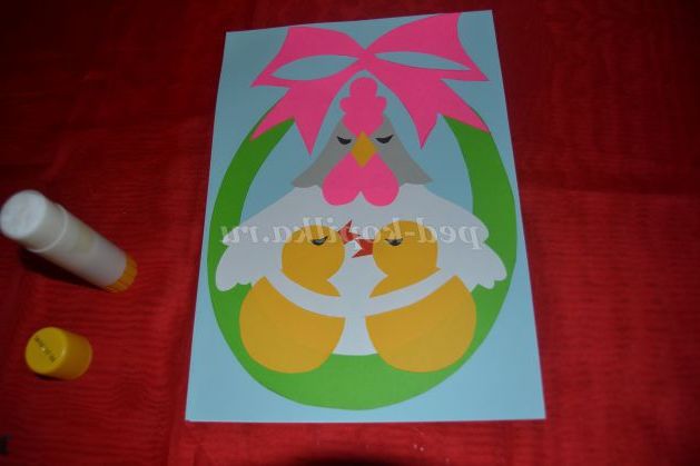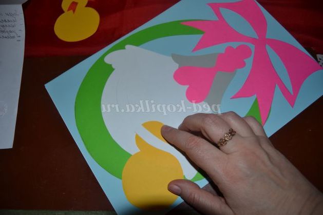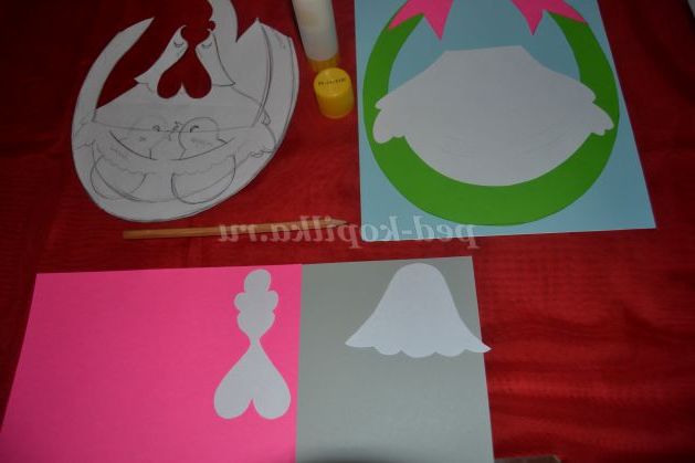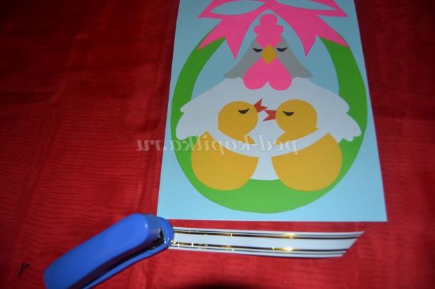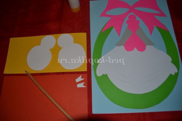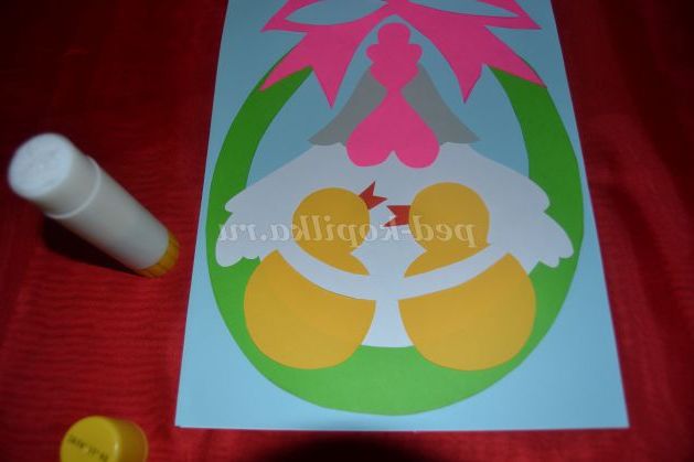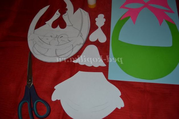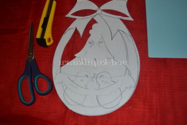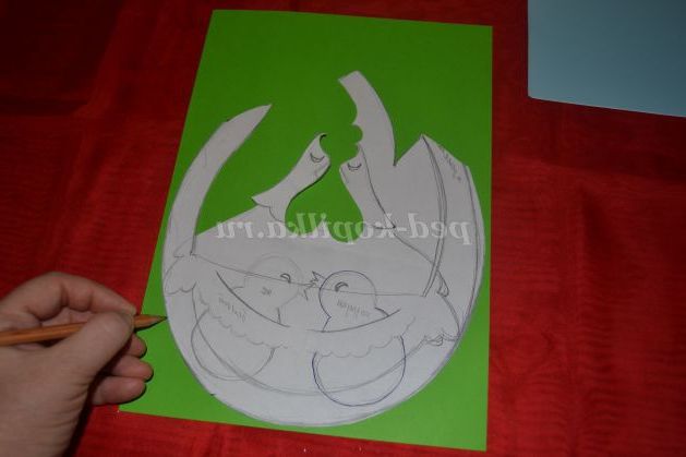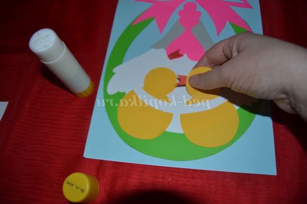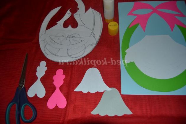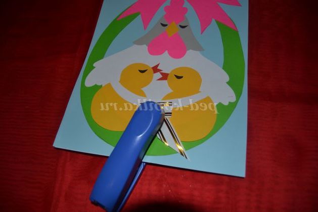 Оперення залишаємо білого кольору, робимо в ньому прорізи канцелярським ножем - надалі будуть кишені для курчат.