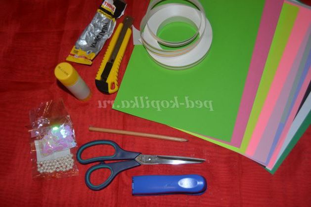 Беремо паперову стрічку з скручуємо з неї нехитрий бантик.