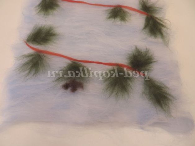 21. Припорошим гілки та шишки «сніжком» з дрібно стриженої білої вовни.