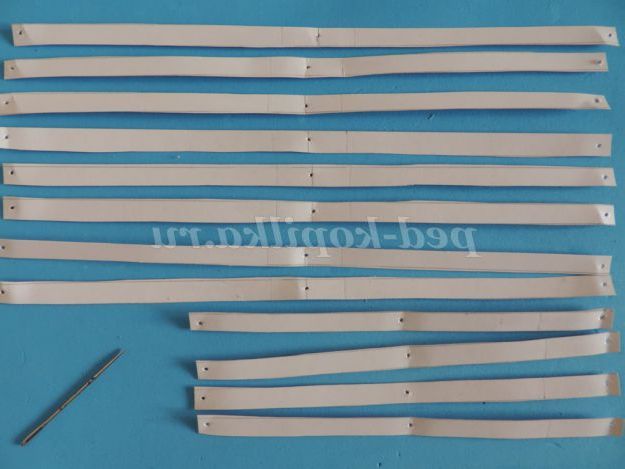 5. По черзі протягуємо дріт в крайні отвори смужок, починаючи з самої верхньої смужки.