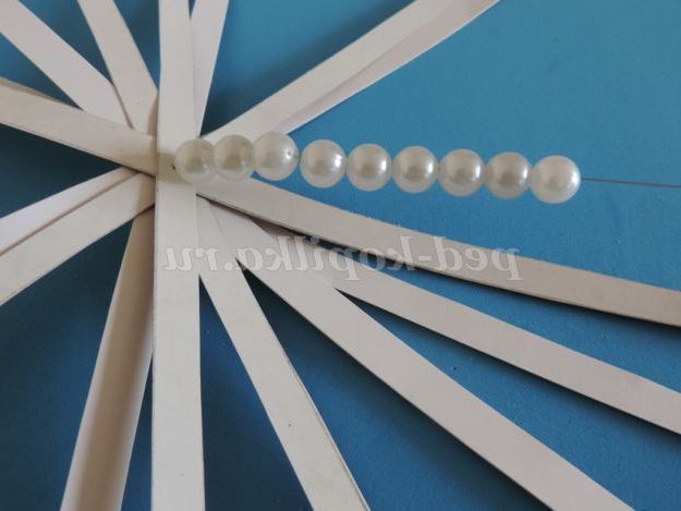 7. Потім нанизуємо короткі смужки і додаємо ще чотири намистини.
