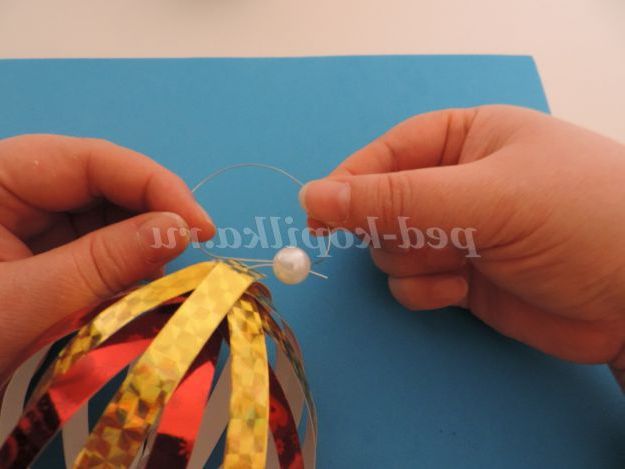 10. Нанизуємо на дріт коло і велику червону намистину.