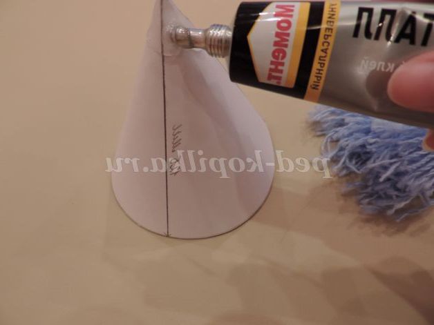 Намажте кінчик картонного конуса клеєм і приклейте його.