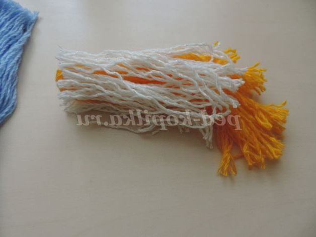 3. Намотайте не великий пучок пряжі білого кольору (примерно10-11см. довгою)
