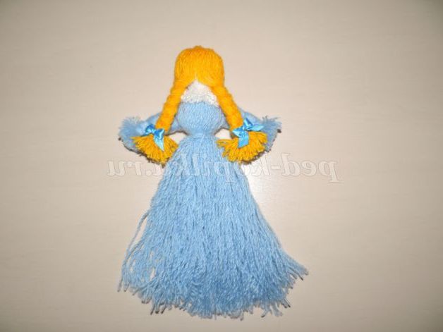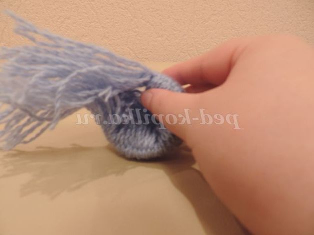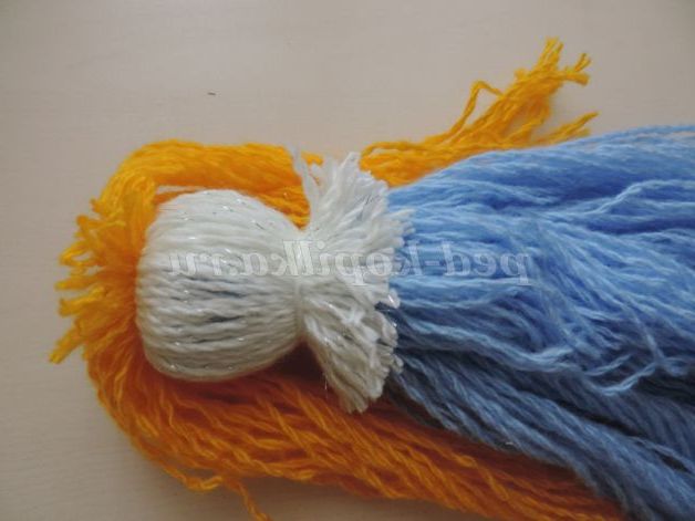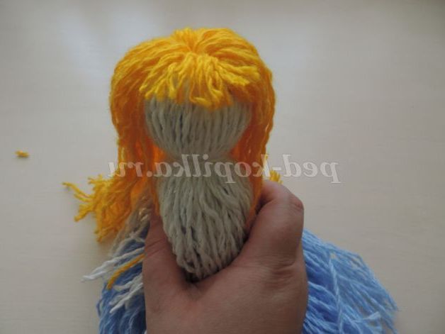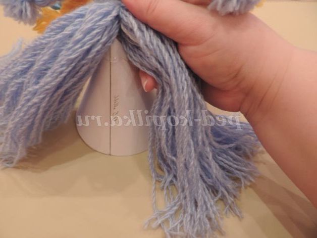 17. Переверніть лялечку і розподіліть блакитні нитки по конусу.