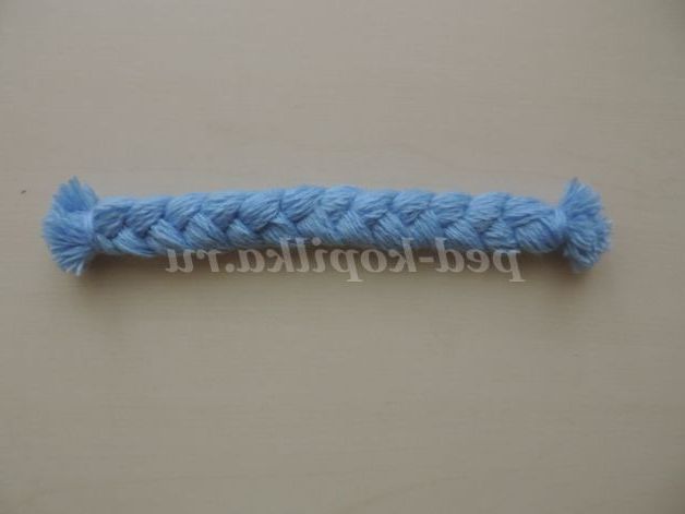 12. Розділіть пучок голубих ниток по полам і вкладіть косичку.