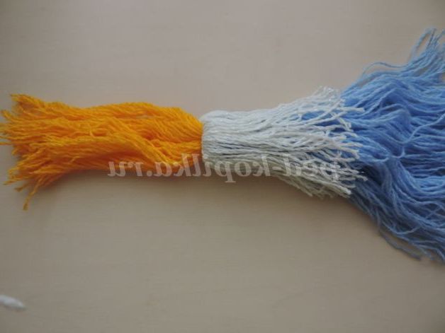 8. Потім, білі нитки розподіліть рівномірно по пучку голубих ниток,