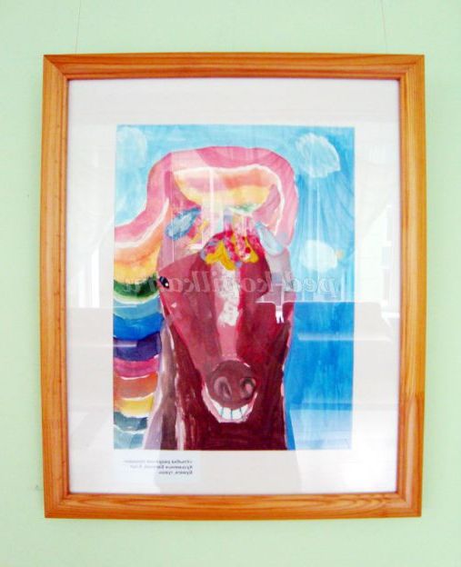 Шановні батьки, для виставки, дитячі роботи краще оформляти у паспортом і рамки. Ця, мило усміхнена конячка, намальована дівчинкою Женечкою, 6 років, зайняла 1 місце у Всеросійському конкурсі.